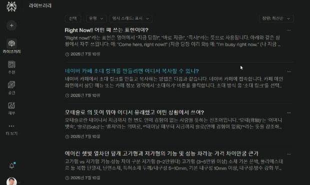 보시다시피, 네이버 카페 메뉴 활용법부터 특정 용어의 뜻과 어원, 신종 AI 서비스들의 특장점 및 장단점, 가성비에 대한 비교 요청, 에어컨 열차단 덮개 쇼핑 정보 검색에 이르기까지, 일상 생활 및 회사 업무에서 수시로 발생하는 다양한 궁금증은 물론이고 필요한 정보 검색까지 카테고리와 질문 수준을 따질 필요 없이 그냥 뭐든 바로 물어보기만 하면 됩니다.